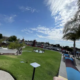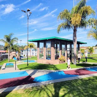 Very challenging yet engaging courses, very spacious, paint job on the buildings and obstacles are nice and nice palm trees. The miniature greens are well maintained. But best of all, they have more than one fountain! Every decent miniature golf course NEEDS to have a fountain! If it ain't got no fountain, it ain't miniature golf!! and if you lose a ball in the water hazards (with fancy fountains) or into the streets of Castro Valley, they give you one for free! ( well they should...). Bathrooms could be better maintained but it lets you do what you need to do so not much to complain there. Definitely a family friendly place! Bring the whole family! Including your baby sister in her little Chinese outfit (remember that Muey?!).