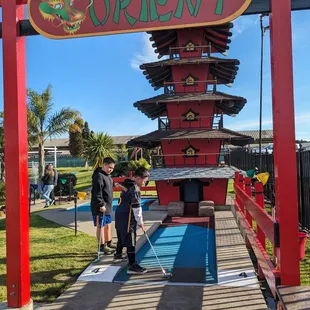 Great place to take the kids to pass time especially on a nice sunny day! It's outdoor so plan accordingly Don't park next to the course!! I recommend parking deeper in the lot so the golf balls don't fly out and hit your car. There's a gate but the only block the bottom of the gate from the golf balls from coming through but there are kids (including my own) that hit the ball above and through the lot. You have an option of picking I think it's 13 or 18 holes. I paid $50 for 3 kids for 13 holes. The kids were able to pick their own color balls which they liked.We went a few days after it had rained so all the holes in each course had nasty water in it so every time it made it in the hole,you would have to grab your ball out of the watery hole. It's also a trip/slip hazard because the grass is all muddy and when you have kids that hit off course it can be dangerous. I took a star away because majority of the games in the arcade wasn't working it all said "attendance assistant required". It happened after I swiped my card so we took frequent trips to the front so they can credit our card since we were unable to play but it took our credits. Which was annoying. And the staff was looking all lost. Thankfully the Asian girl helped her and was nice enough to help and actually did something. We also saw some birthday parties! So you can have your kids birthday here.
