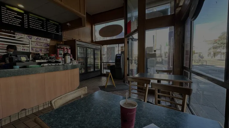 the front counter of a donut shop