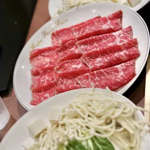 We came here to satisfy our hot pot craving. Decided on the $60 Wagyu combo for 2 people (8.5/10). 2 of the meats are more fatty and the other two are lean. We were stuffed by the end of the portions of meat are generous. We ordered: broths- spicy miso (9/10) and spicy tonkatsu (8/10) for $2 more, a side of rice, our total was around $70. We asked for tongs as well which was helpful to make our experience more pleasant, chili oil, and chili flakes.Staff was friendly, helpful, attentive, and charismatic. Highly recommend for the experience. Ambiance is very comfortable and chill. Only issue was seeing a small fly around our table