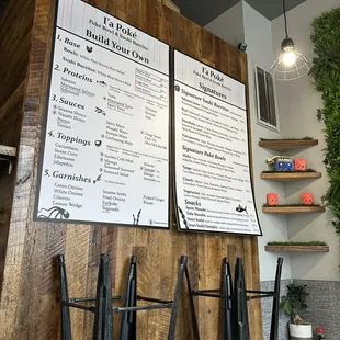 I come here all the time!I love poke and this is a great lunch/fast dinner spot. My usual order which I know by heart now is:Large white rice bowl2 portions spicy tuna, 2 marinated tunaGreen onions + cilantroSesame shoyu, spicy mayo, chili oilFish eggs, crab, both seaweeds, edamame, sometimes avocadoTogarashi sesame seeds friend onions furikakeAnd a little more sesame shoyu on topI always take it to go but I like the music when I'm there. More electronic/pop vibes. I go there often and I think they know my order by now haha
