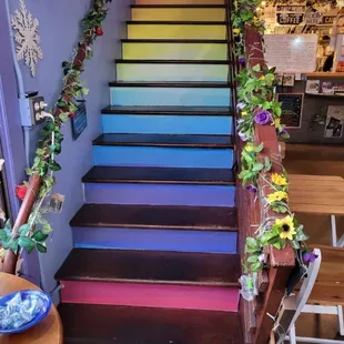 This is a cafe that really cares about its customer's experience! There were so many considerate additions to this cafe I really appreciate, and it made it really inviting to come back to. The decor is definitely over the top in a quirky way, from the wall of dog photos to the plethora of hanging floral strings on the ceiling.Pros:- Huge menu! Lots of fun flavored drinks if you're into that, and prices are very reasonable. Lattes start at 2 shots each!- I really enjoyed my Lox bagel too, so the food menu seems good as well.- Free wifi!! Seating!! Cannot emphasize this enough.- Bathroom, free samples, hot sauce bar, public mini book offering, printer with envelopes and stamps for sale, etc!The only con I can think of is that there are limited windows, so the upstairs seating can feel a bit dark.This overall seems like a really awesome neighborhood cafe with good vibes. Will definitely be coming back to work and chill w friends :)