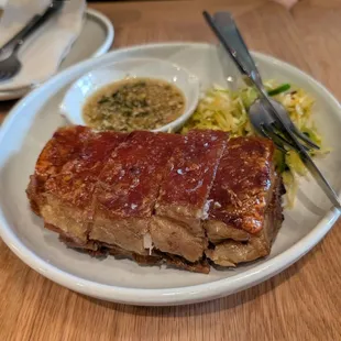 Came with a few friends to try out this restaurant in New Year's Eve! The ambiance was very nice, and I love how the restaurant is decorated. Moreover, the servers were attentive and made sure to fill our waters as well as to regularly check up on us! The location is also great - right next to the Chase Center.For food, we got a plethora of dishes, as seen in my photos. I personally only had the crispy pork belly and coconut rice. The rice was very good, and I had very much been looking forward to it as I'm a fan of Burma Love's coconut rice. The crispy pork belly was quite crispy and fatty. The pineapple slaw that accompanied the dish was a bit too spicy for me though. Definitely a solid 8.5/10 :)I look forward to coming back again and trying new dishes as well as trying out their drinks!