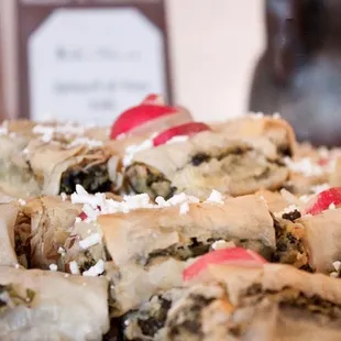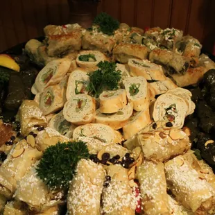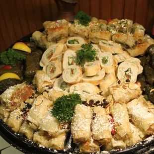 One of the fave places for catering, La Mediterranee Catering brings tasty Mediterranean classics straight to you. The Mediterranean Mezza is an all-encompassing option if you're looking for variety that's got something for everyone. You have some chicken and lamb plus all the the mezza classics like hummus, babaganoush, and tabuleh. You also get some pinwheel sandwiches, some chicken and raisin filo pastry, and spanokopita. Don't forget the dolmas and rice pilaf. It's lots of options and they're all really tasty. Just under $20 per person with a 10 person minimum. Looking for catered lunch that veers away from the typical salad/sandwich combo? Definitely consider La Mediterranee Catering.