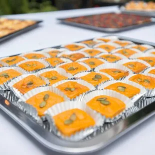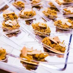 I recently had a cocktail party at home with some friends. A friend of mine told me about the two French sisters (les Cook'ettes) so I decided to try them. I has really been a great choice in many terms: efficiency, kindness, professionalism, variety of appetizers (some are gluten free, vegetarian or can be on request), size of the bits or healthy organic food. We've tried (Hors d'oeuvres) the Gougères (light and delicious), the spiced carrot flans (cumin), the Savory mini-cakes (crusty from the inside and soft inside (goat cheese), Thaï Squash soup (cold and very aromatic), the lentil salad plus different skewers (my favorites are the shrimp ones and quinoa & spinach bites). On the sweet side we tried the chocolate fondants, the financiers, the Mouhalabiehs (stunning mix of orange blossom with honey and pistachios): a no fault. Just perfect.