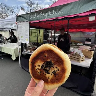 The brunch culture is cray. Waiting 1-2+ hours to pay $20+ for eggs, bacon, and toast is not my jam. If you see a mob of brunch goers outside Café Borrone and don't want to wait...Little Sky Kitchen!(They're hidden to the left of it.)Sure, it's not brunch fare but when you're hangry and can't wait any longer, why not support another local small business for sustenance?An offshoot of Little Sky Bakery, Little Sky Kitchen is churning out an eclectic mix of French, Italian, and Northern Chinese savory goods. The owner started selling her scratch made baked goods in 2018 in Farmers Markets. Since then, she's opened a brick & mortar location just across the street on Santa Cruz Avenue and has a stall at State Street Market (food hall) in Los Altos. Open for takeout and dine-in. We were headed to Stanford Shopping Center so stopped by for a snack. There was no line and it was empty the entire time we were there (Sunday 10 am - 10:30 am). Good option for a quiet meal. M E N UChinese Baos and Mando, Italian Pano (pizza), Sandwiches, and Entrees (already prepared): rotisserie chicken, schnitzel, beef bourguignon, braised pork belly and Sides: potatoes, rice, grilled veggies. For non-savory, they had muffins, scones, cookies, and cake slices. Drinks: Hot tea and coffee. Most items were kept in the cold case and can be warmed up upon request. Steep pricing but it's Menlo Park. F O O D* Shrimp & Pork Mando ($7.50) // 4 stars: https://tinyurl.com/k44h8bnf--Requested to heat it upBest described as a large, flattened Sheng Jian Bao, pan-fried pork bun without the soup. Crispy on the outside with a savory pork, shrimp, and chive filling. The middle was quite doughy tho. * House-cured Lox Sandwich ($16) // 3.75 stars: https://tinyurl.com/2ue5f7j8Good quality ingredients, silky smooth lox that wasn't too salty with a delicious chive (?) cream cheese and refreshing cucumbers. Because it's kept in the cold case, the seeded baguette was too tough and chewy to enjoy (at 10 am opening time). We had to deconstruct the sandwich to eat it. Had it been assembled to order, it would probably be 5 stars. S E R V I C EWarm, welcoming service. There's only one staff FOH and one baker. A M B I A N C EQuaint and cozy with two tables inside and little nook seating area. There's seven tables outside in the covered patio adorned with lanterns: https://tinyurl.com/26xncrcyP A R K I N GUnderground parking garage. Overall, Little Sky Kitchen is good option for grab 'n go meals. When I'm craving Northern Chinese Baos when headed to Stanford Shopping Center, I now know where to go!