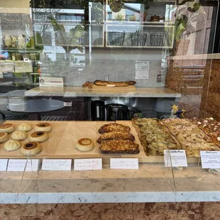 Little Sky Kitchen is a great new add to the downtown Menlo Park area!They have the same yummy pastries you may know from the little sky bakery tent across the street. They have a mix of savory foods and sweet pastries that provides many options to choose from. As of June 1, 2024 they only offer teas and instant coffee with sugar and milk in the way of drinks, but I'd love to see this expanded to a more full cafe menu as they settle into the larger space. This is fine for me given I enjoy hopping to different cafes in Menlo Park if I want a specific iced coffee or something. Staff were very kind and offered free samples of different foods. The seating area is a bit basic, but definitely vibey. At least while it's new, it's quiet and not crowded but I could definitely see this change! Overall I'll definitely be back to sample more of their delicious foods and enjoy the vibes :)