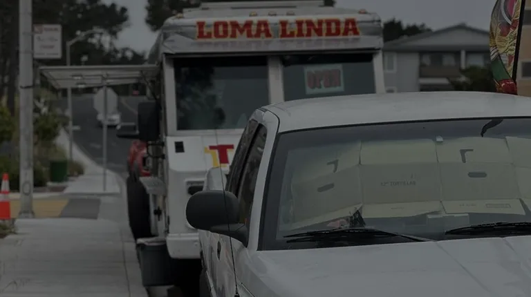 a taco truck parked on the side of the road