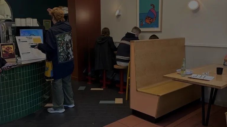 Small place. Cashier right in front of you when you walk in, small menu make ordering faster.