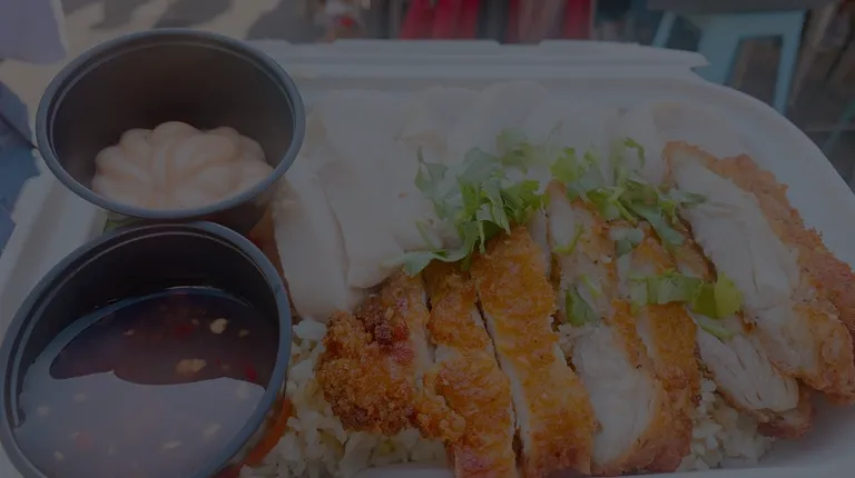 3.5 starsChicken -I got the combo. White meat was good, the katsu style was decent, a bit dry.Rice - good but not great. There were patched of mushy rice sticking together. It pales in comparison to true Hainan chicken rice as its too sticky at times.Price and service - super nice people and for $12 for the quantity, it's a steal.Secret of success - green cilantro sauceSo food wise, its a 3, but service and price pushes it up 1 star.
