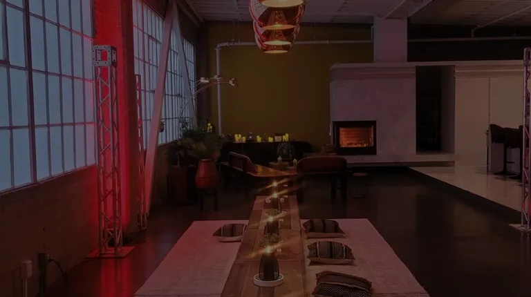 a long table in a dimly lit room