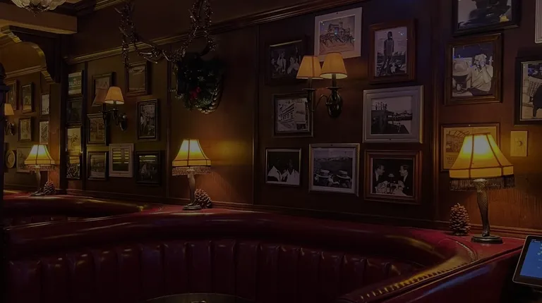a bar with deer heads on the wall