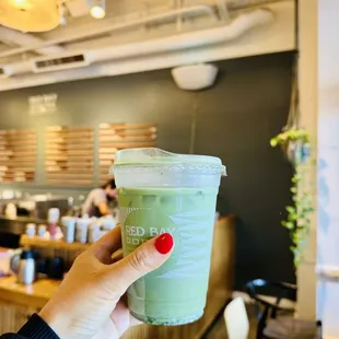 Strawberry matcha spritzer, 16 oz. The matcha dominated the strawberry.