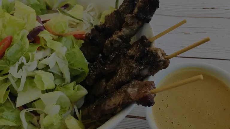 Chicken satay, not bamboo skewered but wrap around lemongrass, original. It's been all over Bali for centuries.