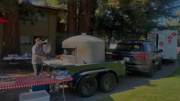 Garden with pepperoni all Day firewood pizza