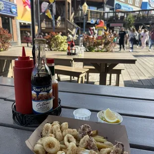 There are SOOO many options for fish and chips in SF and on the pier itself that there really isn't a reason to stop here. The staff was really friendly despite being late at night. But the food was incredibly mediocre and it wasn't that much cheaper than other spots on the pier. Both my wife had a fish and chips and split a cheesy crab bite. The crab bites felt more bready than crab or cheese. The fish and chips was crispy but otherwise relatively bland.
