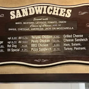 a menu on the wall