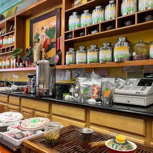 3 stop on the SF food walking tour! VERY great customer service she greeted our group immediately when we got here. All sat down and she started making tea for us to taste. Tea lines the walls on all sides, gives it a great vibe for a tea shop!I picked up tea for my husbands "fatty liver"