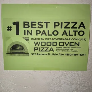 Went here the other day, it was delicious! The salad they had was great, the pizza was well made. The ambiance is a good place to be casual (need to order at the counter, food gets served to you) in a laid back yet chic/modern setting, with a few friends or a date/SO. The decor is slightly rustic or old French or old Italian with a few modern touches, I actually liked it. The music was modern.I did think the prices were a little pricier considering you need to order at the counter, but the quality was good! It's not surprising it was considered to have the best pizza in Palo Alto (see pic).