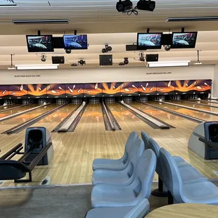We went here on a Saturday around 6:20pm and there was no wait! This bowling area was very empty and there was only one other group inside at the time. At first, we were thinking about doing the ice skating side, but ended up choosing the bowling side since it was available at the time we went.Ok, so I've been here to their ice skating since before and I know the ice skating side is fun, but this time we decided to do something at their bowling side.From our recent experience, the bowling side felt like the bowling side was rigged or something, and the lanes didn't work properly. We told worker about the problem we were having with the lane and how our ball never came back. Then he told us to just keep rolling more bowling balls on the lane. The bowling balls never came back out even though we did what the worker told us to do. Later, the SAME worker came back and told us to let him know next time we have an issue with the lane even though we did tell him (how frustrating)!I would NOT recommend the side with the bowling alley, but I would recommend the ice skating side. There was only one worker on the day I went for bowling recently and not all of the lanes function properly here because of some mechanical issue.