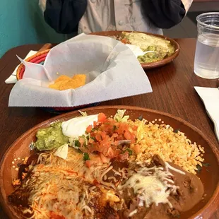 Really wanted to like this place because the service was nice but it's truly just average. Free chips but they were cold and kind of stale. I got the enchilada plate with chicken in mole sauce. The sauce was bland as well as the rice. The refried beans tasted like they came straight out a can. You have to walk through the kitchen if you need to use the restroom which seems a bit unsanitary. Cute little place but subpar food.