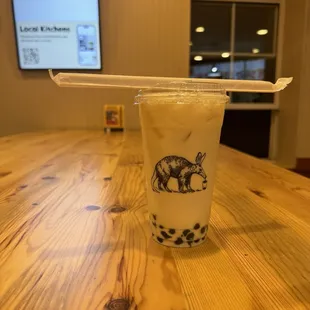 Love ordering DoorDash from here. My go to is the black milk tea. This time though I drove to the local kitchens location and love the vibe. It was clean, with people seated outside and a chill Tuesday night. I decided to go with the jasmine green milk tea from skimming some reviews. The order came in under a couple minutes and was fast and efficient. Upon drinking the jasmine green milk tea it was floral but not fresh- more metallicy (closer to what you would expect drinking tea teas, but standard in flavor but was a bit off putting for a jasmine green milk tea boba). The boba was either sitting for a bit or a bit undercooked but minuscule, still chewy and not overcooked or "melty" (I don't remember other times for the boba but I believe the boba is pretty stable in terms of quality/being cooked).I ordered it w 50% sweet and half and half.Needless to say I will probably be sticking to my go to black milk tea for ordering here (my go to flavor wise- will say the tea itself I've experienced is more on the dilute side for the black milk tea), and wait another time when i decide to venture the menu more~*to note not saying this place is my go to, but one of the go to's for a late night craving. When i order here or get a craving around late night and decide DoorDash, the black milk tea is one of my go tos. I also order 50% sweet and half and half.