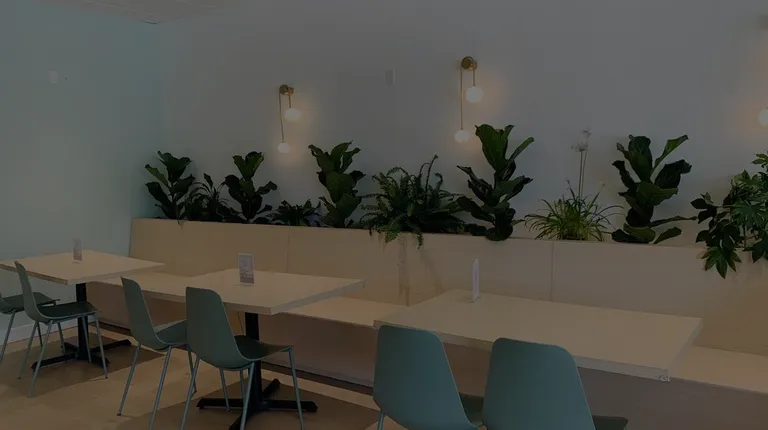 a counter and chairs in a restaurant