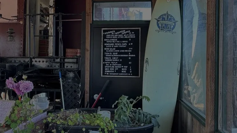 Mushroom and egg sammie with Mavericks Beach as the backdrop. It doesn't get any better than this!