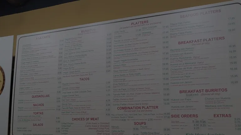 Potato Taco Combination Plate (~$17).