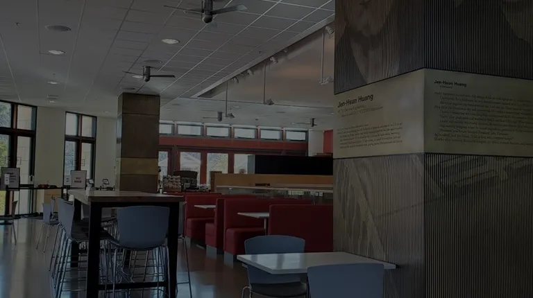 It's a cozy cafeteria tucked inside of the Jensen Huang building and it's pretty popular - there were always a couple tables available, but you do have to wait a bit for your food. The options include an Asian themed menu of either pho or chicken curry laksa, a boba shop, and a Coupa Cafe. You can order on iPads for the first two options and they have a small seasonal menu for hot food as well.The boba store is solid. Chun Yang has fantastic tea, though I can't speak to the boba as I got the grass jelly. Pricing is pretty standard for the bay, which is to say expensive - expect to pay over 10 bucks if you get a topping.The curry laksa didn't have a ton of chicken, but the soup was solid. Personally, I thought the rice noodles really didn't hold up to the heavy flavors, so I might recommend the pho instead. Serving size was okay for 14 bucks.Overall, good option for campus food, but just okay if you're paying cash.