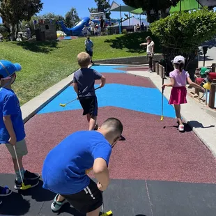 Place has a lot of potential as it offers a lot, but it also offers a nice lesson in chaos. This place is a mess. Trying to have a nice game of mini golf with my daughter and wife, but people were jumping through the holes like nothing mattered. Some kids just showed up in front of us and WWIII almost happened. No real structure to this place. Just be prepared to have to lay the law down. Still, it's a cool spot for the kids to enjoy as long as you have a decent amount of patience. This place was packed today and mini golf isn't going anywhere.