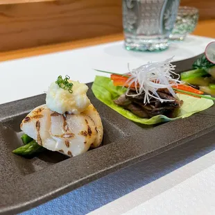 We were curious about this place and were able to grab a reservation for dinner omakase. The interior was spacious for the number of seats. Ken took care of our table and he was pleasant and accommodating. He expertly presented each dish as they came out. Our cups were constantly refilled throughout the night.The food was all-star. Each dish was fun for the eyes to take in and we enjoyed them all.It took about 1.5 hours altogether. We had a lovely time and would go back.