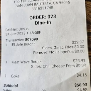 Over charged food receipt