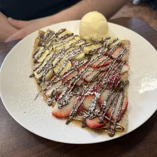 Columbus Crew Crepe + strawberries (strawberry, Nutella, and whipped cream) ~$11.25