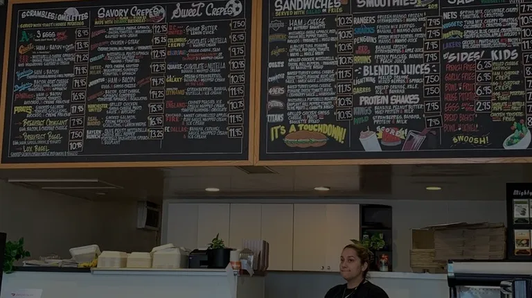 What a great find!! If you are a sports dan, you'll love the menu item names! Theres a couple tables inside, definitely a good little hangout for a small breakfast option! My boyfriend and I tried both the savory and sweet crepes, definitely recommend either! You really can't go wrong! Pretty straight forward, you go to the kiosk to pay with card, and they said the register is for cash only. Once you are done, you plug in your number and find your own table. Definitely will be back!
