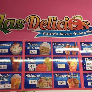 Antojitos or "little cravings" are the Mexican street food snacks that are enjoyed between lunch and dinner. Las Delicias Paleteria offers the most comprehensive menu that I've seen in the Bay Area and paired with their offerings of ice cream and desserts make this a one stop winner.The key to the popularity of these street food items are both their price and their freshness. Most items are below $6 and are all made to order when you choose from their menu. Fresh fruit, spices like chamoy and chili powder, and sweet additions like agua fresca, ice cream, and more like coconut, jicama, and tamarind round out the novelty of flavors, especially to those with a more Western palate. I stopped by for the most popular item, the Mangoneada (cut mango, with mango ice cream, topped with chamoy, tamarind straw, and a touch of chili powder) and was not disappointed. I've had this at many paleterias in the Bay Area including United, Monarcha and Snacks. The version here was filled with more fresh cut mango than any version I've had before. They literally filled it to the brim and then added the scoop of mango ice cream.There are so many menu choices that I'll need to come back and sample a bigger variety. While there are pictures, it's hard to tell what actually is depicted in the menu. Case in point was our order:Mangoneada - $6. Described above. A little pricier than other places that I've seen at $5, but made up for the quality.Salchipulpos - $5. The picture looked like french fries topped with nacho cheese. Turned out to be delicious double fried french fries topped with sliced hot dogs and your choice of ketchup, mayonnaise, and mustard. Yup, the yellow wasn't cheese but was mustard. They serve nachos with cheese so I asked for cheese instead, but they didn't seem to want to offer it or understand my request though I offered to pay the extra cost. Was this good? It was, but what I wanted was cheese for an even more decadent snack! Salchipapas usually means fried potatoes, but this word (pulpos means octopus I think) refers to the hot dogs that are cut into octopus shape! A few other tips: locos (which is added to many items) usually means with chili powder, peanuts, and cooked pig skin (not my cup of tea, I like it fried). Elotes means corn and there are some promising stuff like Elotes (cups of corn, cream, and cheese) and Tosti Elotes (bag of corn chips and corn). Other unique items include Raspado (shaved ice) which you can top with fruit, chamoy, and ice cream and Tejuino (sweet fermented corn drink). Service is friendly and it can get busy and you may have to wait as they make things one by one. They also had fruit popsicles (paletas) but they didn't look quite as delicious as the ones in Redwood City. Overall, great stop, great snacks and desserts and friendly service. Yes, it's East PA, but it's nice to have a stop on the mid Peninsula as most places are in Redwood City and above or San Jose/East Bay.Las Delicias also accepts credit cards, including American Express.