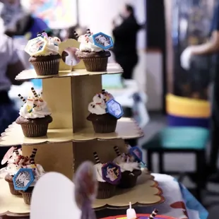 cupcakes with frosting and decorations