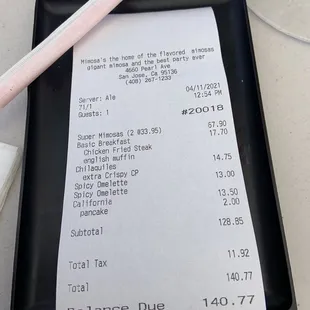 Very underrated breakfast/brunch place in South San Jose.Food here is very flavorful and portions are on the generous side. I never leave here feeling hungry...their menu is huge too. Wide variety of breakfast usuals and burgers/sandwiches. Most entrees are in the $15-$20 range; which is same range as places in San Jose such as Bill's and Scramblz.I always get the chicken fried steak plate. It comes with a chicken fried steak (very tender), a huge biscuit with gravy, 2 eggs and country potatoes. I also like the pancakes here, they are huge. Very sweet too...it eats like a dessert almost!If you came here to drink, they got you covered! Lots of different mimosas, chavelas, and other drinks. They have a good selection of hard liquor too. Their famous super mimosas is $35! Ambiance wise, it's comfortable but a little dark inside. It sits in a tiny strip mall with very limited parking. If you don't know the area, it may be easy to miss. Service is also hit or miss too. I never had "horrible" service but there have been times when it definitely could have been better.I'm glad they made it through the pandemic! Always a satisfying meal at Mimosas!
