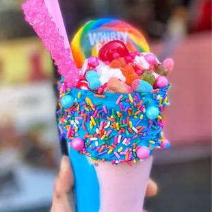 two milkshakes with sprinkles and candy