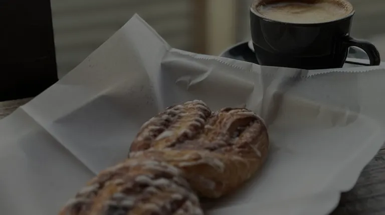Orange blossom latte with sausage and mushroom quiche