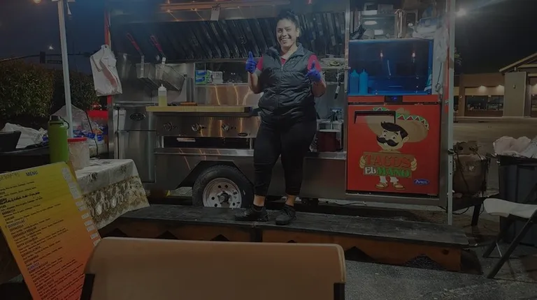 Food: go for the shrimp tacos, you won't regret it. They're on the bigger side so two was perfect.Their orange sauce is just the right amount of heat for me. Service: always nice and friendly. Feels like I'm at auntie's house and she's cooking for the family Ambiance: look for the well lit bright tent in the same plaza as Outdoor Supply Hardware.I always order and eat at the table they set up.There are two vendors so make sure you look for their name :)