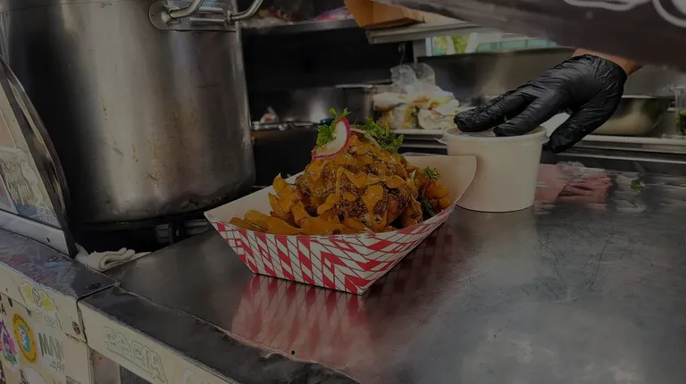 These guys were outside of Pour Decisions today so we grabbed a bite. The line was short which was nice so our order was ready in under 15 minutes. Here's what we got: PIZZADILLA - this was smaller than I thought but ended up being large enough to feed the 3 of us who weren't starving. The meat was super tender and the tortilla was crisp and yummy. I wished there was a little more heat and a bit more tang to cut the richness of the meat and cheese. The fresh lime squeeze was nice. It was also pretty greasy but that added to the flavor. BIRRA FRIES - These weren't my favorite. Kinda one note IMO but cooked well. Would have liked more gooey cheese and again, something to brighten it up a bit. Maybe a lime cilantro crème or something and more of the mango salsa. It was just a lot of fries under the meat. Overall the service was great and quick for being made fresh to order. It would have been nice to have had paper plates and lots more napkins because there is no real way to share without making a mess. I also would have liked more salsa but it sounded like they were running low so no extras were available. This would be outstanding bar grub so maybe next time I'll try it with a beer!