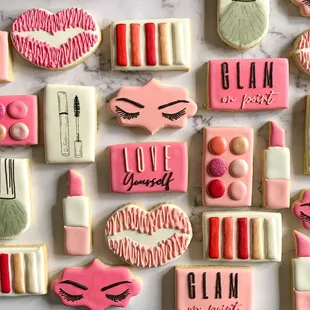 a variety of decorated cookies