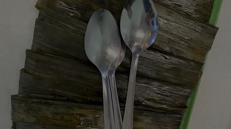 Inside the shrimp/pork/tapioca in banana leaves