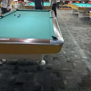 billiard tables in a pool hall