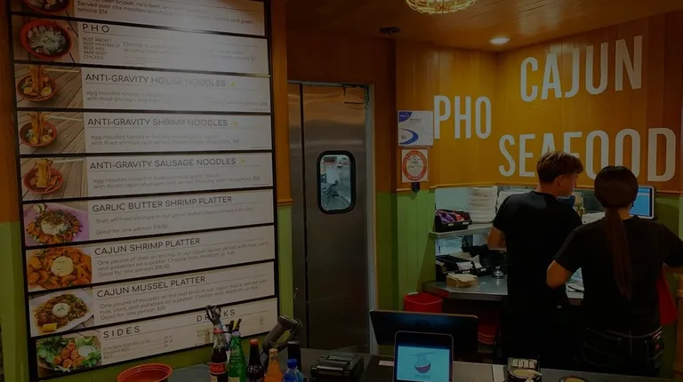 It's my first time to come here and really excited to try their anti gravity noodles. The noodles was look amazing and smelled good. It's good...but if you don't like garlic maybe you can request to put less. I gave 3 stars because I was disappointed on my calamari. They gave me all tentacles so I returned it. The Service was fast and servers are very polite and welcoming. The ambiance here are little noisy because its a Food court style.