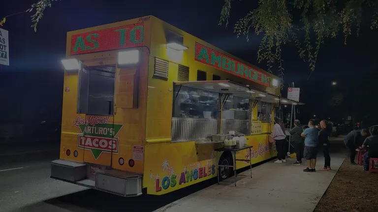I recently moved into the area to work in the Anaheim Resort Area and stumbled into this place after driving past this truck & the other trucks located at the same park after a while finally deciding to at least try them out. Arturo's is definitely the best truck out of all of them with their meats being juicy and flavorful. Their Al Pastor is fresh off the trombo. Their sauces are also phenomenal with their salsa roja being smoky with a good kick to it and their salsa verde having good flavor. They also have an avocado sauce which sometimes comes a but watery but that's easy for me to pass on. They also have a self serve side of beans, grilled onions, and grilled peppers which are a must to add onto your plate especially the grilled onions being perfectly caramelized. Their prices are also very well priced with each taco being $2. If you decide to get the Nachos or fries you'll pay $10 for a huge portion I usually share with others. In terms of dining there they just have two folding tables & stools & every now and then the staff comes out to wipe down the dining area & the side bar which can get wrecked by their own customers so it helps when they are attentive to their own stations.The Churro truck behind them is also pretty good to get dessert afterwards.