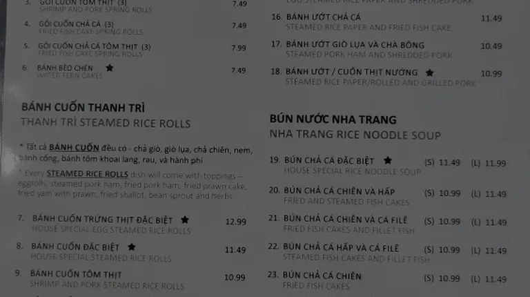 Food: 9/10 I chose the #13 Banh Cuon Thit, which consists of pork steamed rice rolls. The dish came with a variety of items on the plate, including an eggroll, steamed and fried pork ham, fried prawn cake, and fried yam. This was my second time trying banh cuon, and it did not disappoint! I also enjoyed sampling all the new items that came with it. They provided fish sauce on the side, perfect for drizzling (or drowning) over everything while eating.Cost: 10/10 The total was $12.99 before tip, which is an amazing deal! Such a great assortment of food for such a low price. Plus, they even included sweet tea on the house!