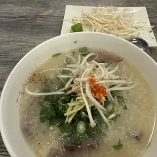 I took my family there, the staffs were rude af. Once we asked what would they recommend, they asked us If we could see the name of the place , like what the point of getting in there and ask them for recommendation while having no idea what we will order. After that, we ordered 3 bun bo , 1 chao long and I told the guy who took our order that I would like to put the toppings on the side. Turn out, he charged $12 for a side dish of topping and $13 for the bowl pf porridge. Not even mentioned how the staff slammed the bowl when putting it on our table and almost spilled the drinks. What a terrible experience with this place, also the food wasn't even good. I don't think I can find a reason to comeback and support them.