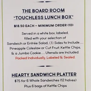 the menu of the restaurant